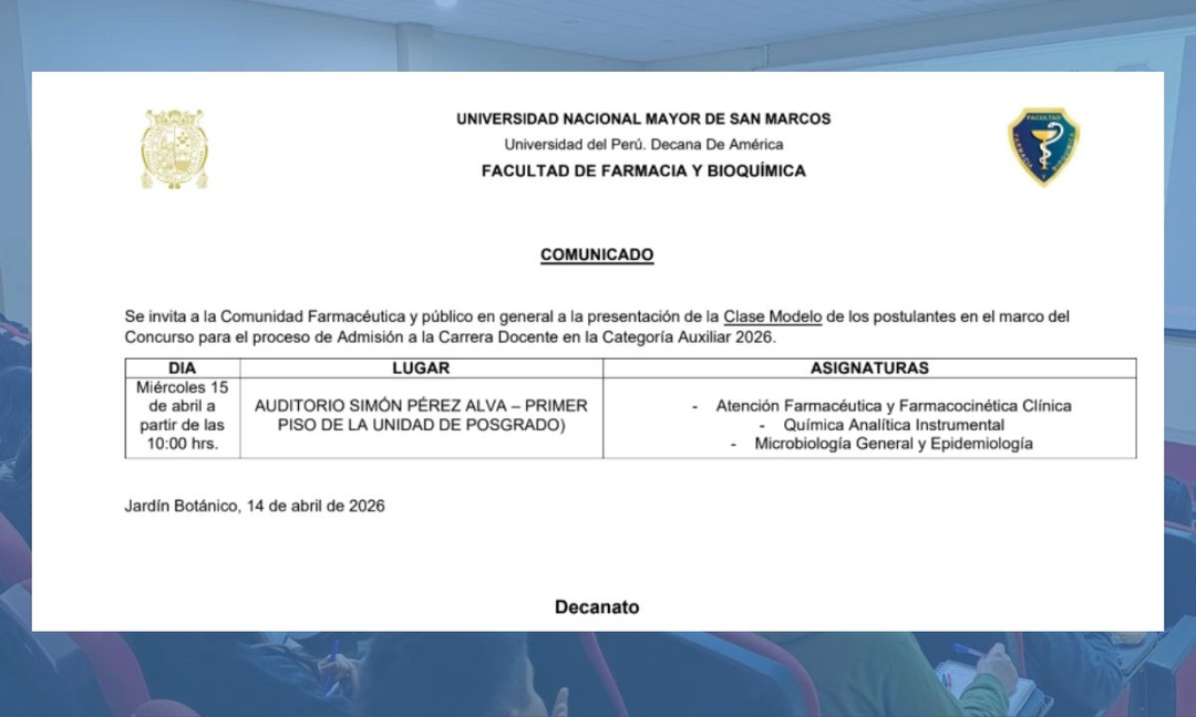 Facultad de Farmacia y Bioquímica de la UNMSM impulsa la actualización curricular de sus escuelas profesionales con jornadas académicas 2026