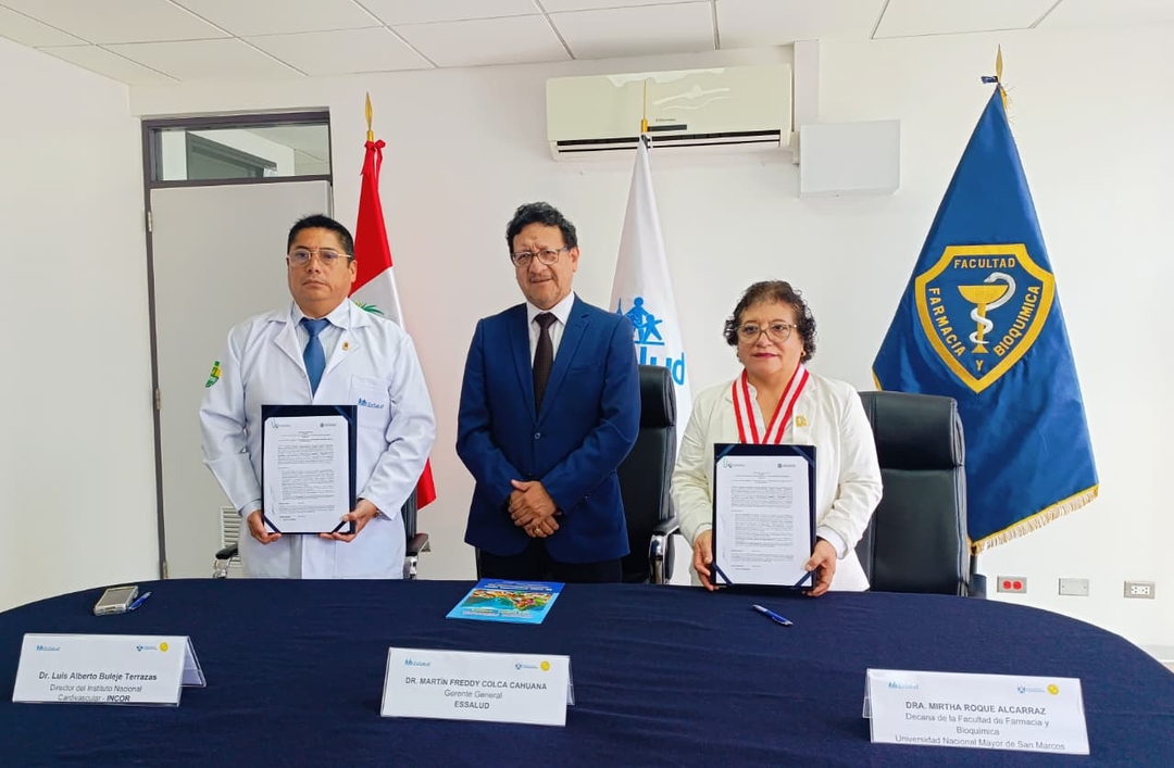 La Facultad de Farmacia y Bioquímica de la Universidad Nacional Mayor de San Marcos suscribió un Convenio Específico de Cooperación Interinstitucional con el Instituto Nacional Cardiovascular “Carlos Alberto Peschiera Carrillo” (INCOR – EsSalud), con la finalidad de fortalecer la formación académica, la docencia en servicio, la capacitación y la investigación en el ámbito de la salud.